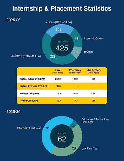 Internships form an integral part of our academic framework, designed to provide students with hands-on exposure and industry insights. Recognizing the importance of practical learning, our Internship Cell actively collaborates with reputed organizations, law firms, corporate houses, start-ups, NGOs, and government institutions to offer diverse opportunities across disciplines.