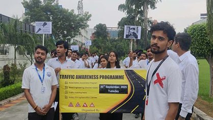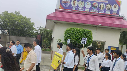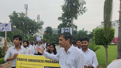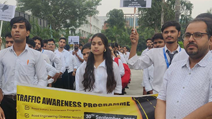 On 30th September 2025, the Innovative Institute of Law organized a Traffic Awareness Program at the campus auditorium to promote road safety and responsible behavior among students and faculty. The event featured an enlightening address by Mr. Kapil Kumar, Traffic Awareness Cell In charge, Gautam Buddha Nagar, highlighting citizens’ roles in ensuring traffic discipline. A Traffic Awareness Rally covering a 1 km stretch through Knowledge Park–II was conducted, with participants displaying impactful slogans and engaging the public. The program also included a street play on drunk driving and a pledge ceremony reinforcing commitment to road safety. The initiative enhanced students’ understanding of traffic laws, encouraged civic responsibility, and fostered collaboration with local traffic authorities