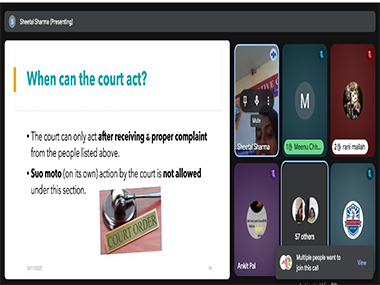 Conducted by an esteemed legal expert, the webinar provided detailed insights into the Act, its enforcement, and the role of the judiciary in addressing dowry-related issues. Students actively engaged in discussions and queries, gaining a deeper understanding of both the legal and social dimensions of this critical topic.