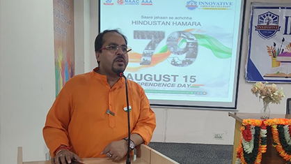On August 15, 2024, Innovative College of Pharmacy commemorated the 79th Independence Day with great joy and patriotism, embracing the Har Ghar Tiranga campaign's ethos. The national anthem was played after Hon. Chairman Dr. K.R. Sharma and Academic Director Dr. Titiksha Sharma raised the flag to start the program.Highlights included student patriotic performances, Principal Dr. Amarjeet Singh's inspirational speech, and a variety of cultural presentations that embodied freedom, unity, and patriotism.